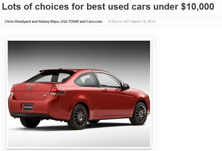 (Source: Lots of choices for best used cars under $10,000, USA Today, March 18, 2014)