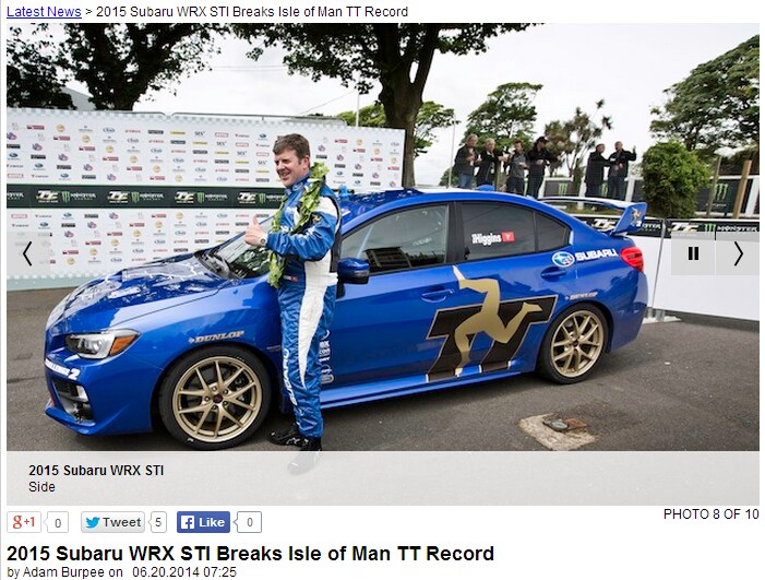 (Source: 2015 Subaru WRX STI Breaks Isle of Man TT Record, AutoMedia.com, June 20, 2014)