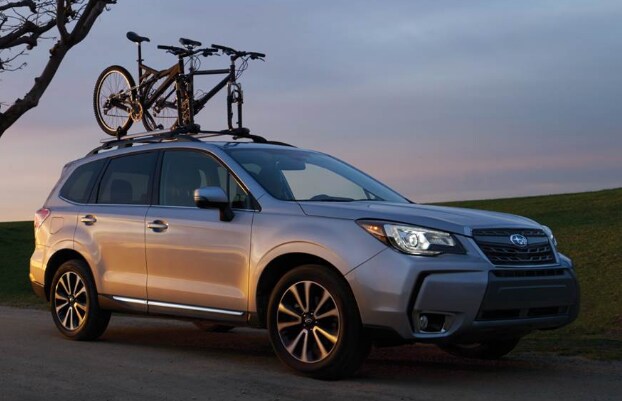 Several of the 2018 Forester's outside features are specific to certain trim levels. Beginning at the Premium level, roof rails and a rear spoiler are standard, while the Limited and Touring models get fog lights and steering responsive headlights. On the XT model, drivers get a sportier front end and dual chrome exhaust tips. The Touring, Premium, and XT models get 18" wheels, while other trim levels get 17" rims.